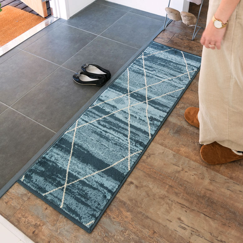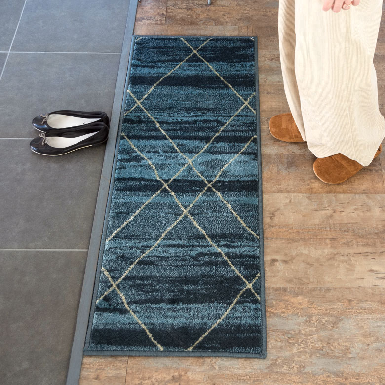 ラグ キッチンマット 玄関マット 45×120cm ベニオワレン風 ブルー [eg83039]【 ラグ カーペット おしゃれ 長方形 ラグ 絨毯 じゅうたん オールシーズン 春 夏 秋 冬 45cm 45×120 ベニオワレン風 モロッカン モロカン アジアン 敷物 マット rug carpet 青 】